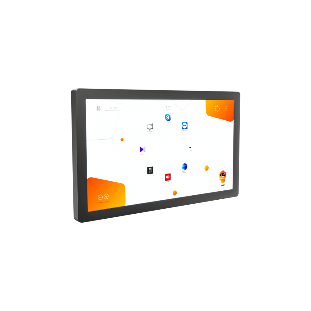 - Прочная и безопасная конструкция для ежедневного использования — корпус выполнен из долговечных материалов, экран защищен прочным стеклом. Панель предназначена для настенного крепления или установки на мобильную стойку, что обеспечивает ее устойчивость и безопасность в условиях активной эксплуатации в учреждениях и офисах.