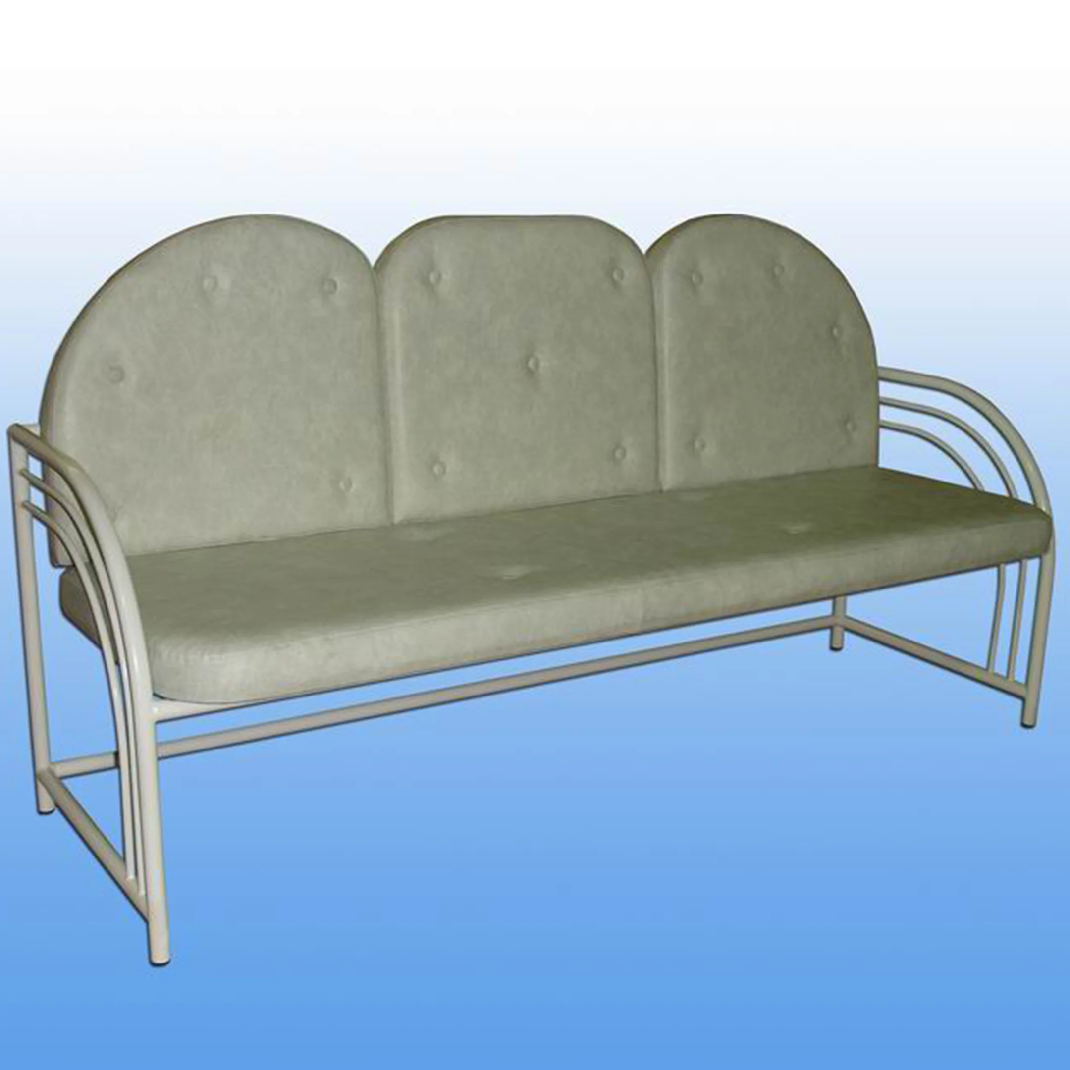 Каркас дивана исполнен из прочной круглой трубы диаметром 25 мм и надежной стали диаметром 10 мм. Металлическая рама сидения поддерживается четырьмя опорными ногами, покрытыми безопасным и экологичным полимерно-эпоксидным порошком, а на каждом видимом конце установлены удобные черные пластиковые заглушки, устраняющие риск травмирования и случайных повреждений поверхностей пола.