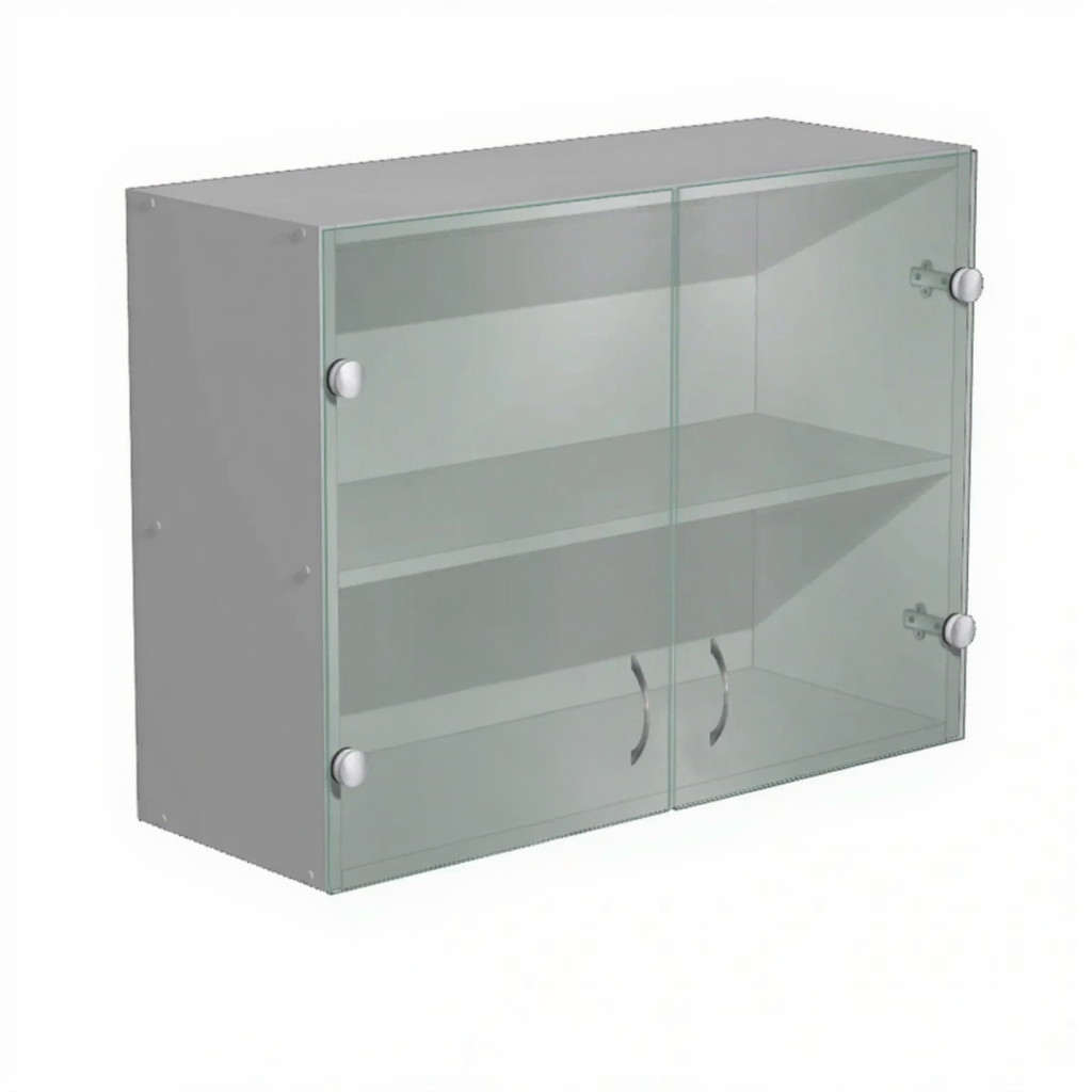 Шкаф навесной со стеклянными дверцами ШН-2 (ЛДСП серый) предназначен для оснащения кабинета врача в медицинских учреждениях, кабинетов лабораторий, для хранения документации, материалов, предметов необходимых для работы персонала.
