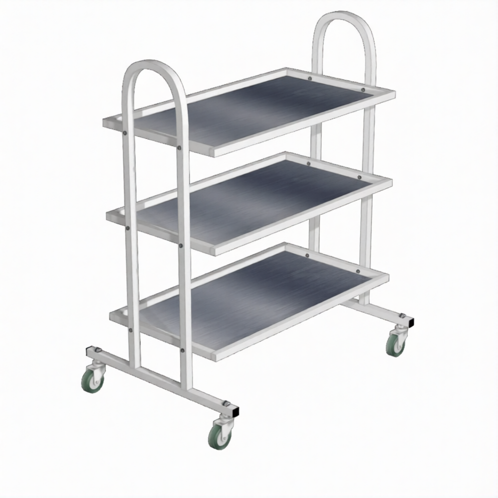 Стол инструментальный (колеса резина) СМ-3 (каркас белый) — это трехъярусный мобильный стол, применяемый для размещения инструмента, материалов и медикаментов, в том числе в стоматологической практике, в кабинетах врачей, перевязочных, операционных, на постах медицинских сестер в отделениях больниц, клиниках, поликлиниках и других медицинских учреждениях. Модель имеет три полки из нержавеющей стали и боковые ручки-дуги для транспортировки.