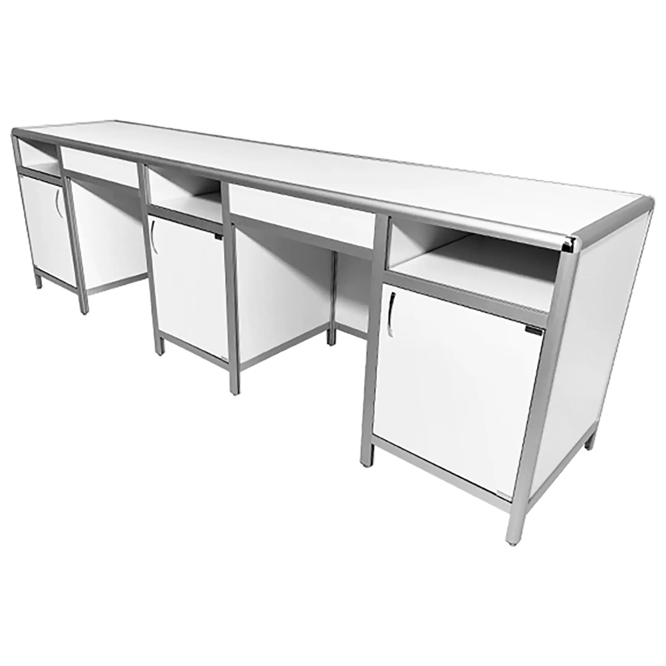 Стол лабораторный MED 10.012al (белый) представляет собой идеальное решение для создания эффективного и организованного рабочего пространства сотрудников лабораторий и медицинских учреждений. Модель оснащена тремя тумбами, каждая с верхней открытой нишей, отделением с распашной дверкой и полкой. Каркас выполнен из алюминиевого профиля, столешница из ЛДСП толщиной 16 мм.