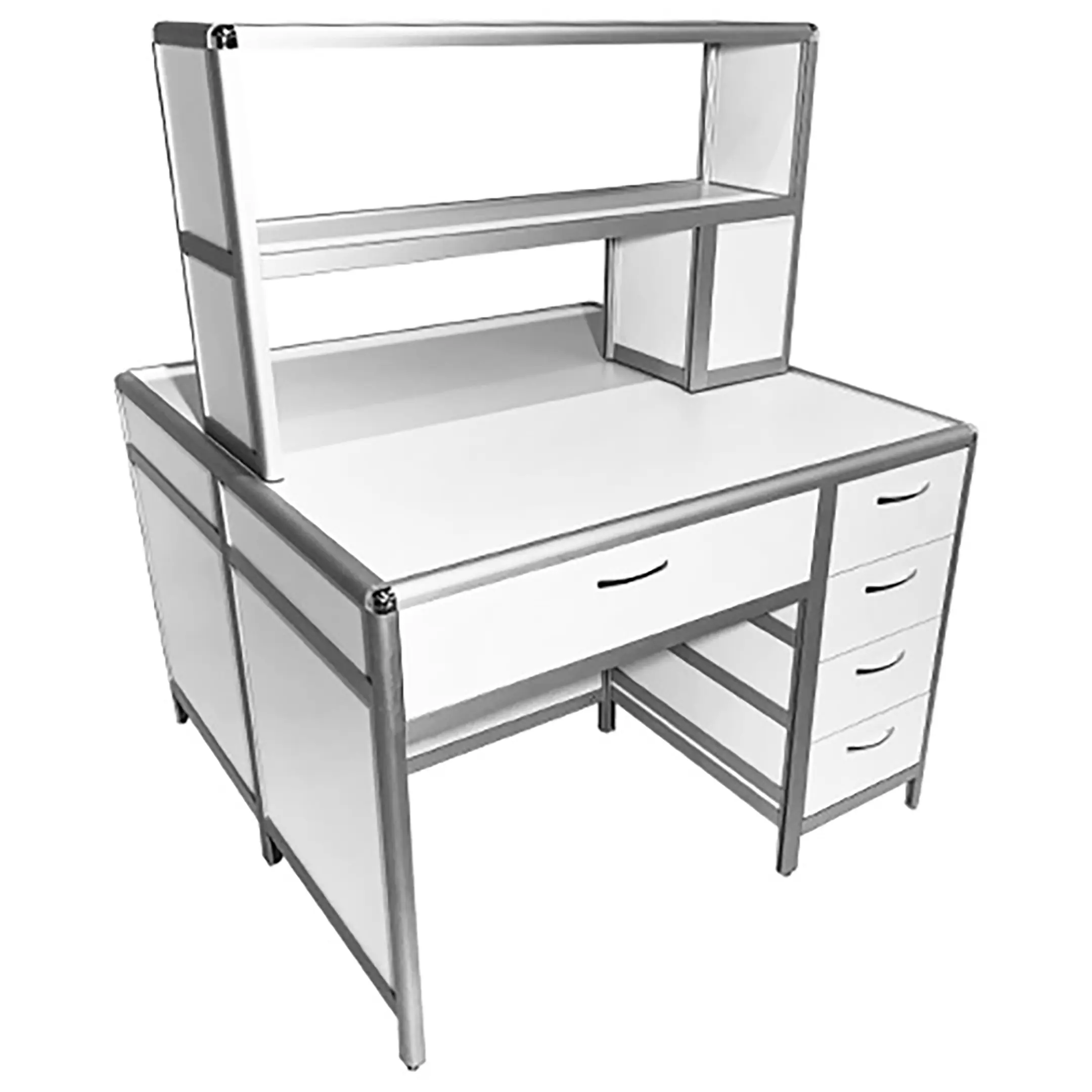Стол лабораторный островной MED 11.002al с надстройкой (белый)