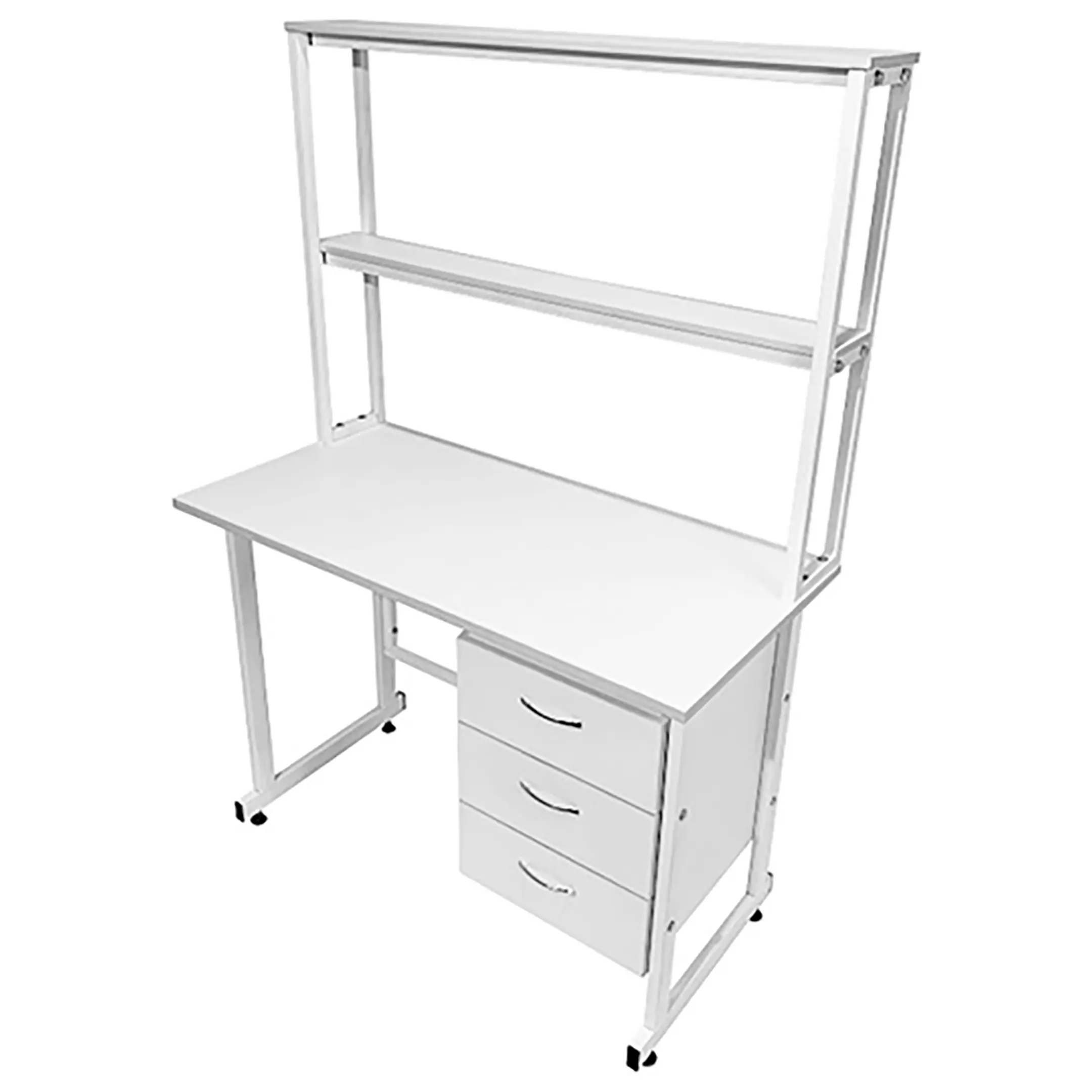Стол лабораторный с надстройкой СЛн 16.004 (белый) — это оптимальное решение для организации рабочего места лаборанта, занимающегося проведением химических исследований в лабораториях и медицинских учреждениях. Модель оснащена подвесной тумбой с тремя выдвижными ящиками справа, надстройкой с двумя полками и металлическим защитным экраном. Каркас выполнен из стального профиля, столешница из ЛДСП толщиной 22 мм.
