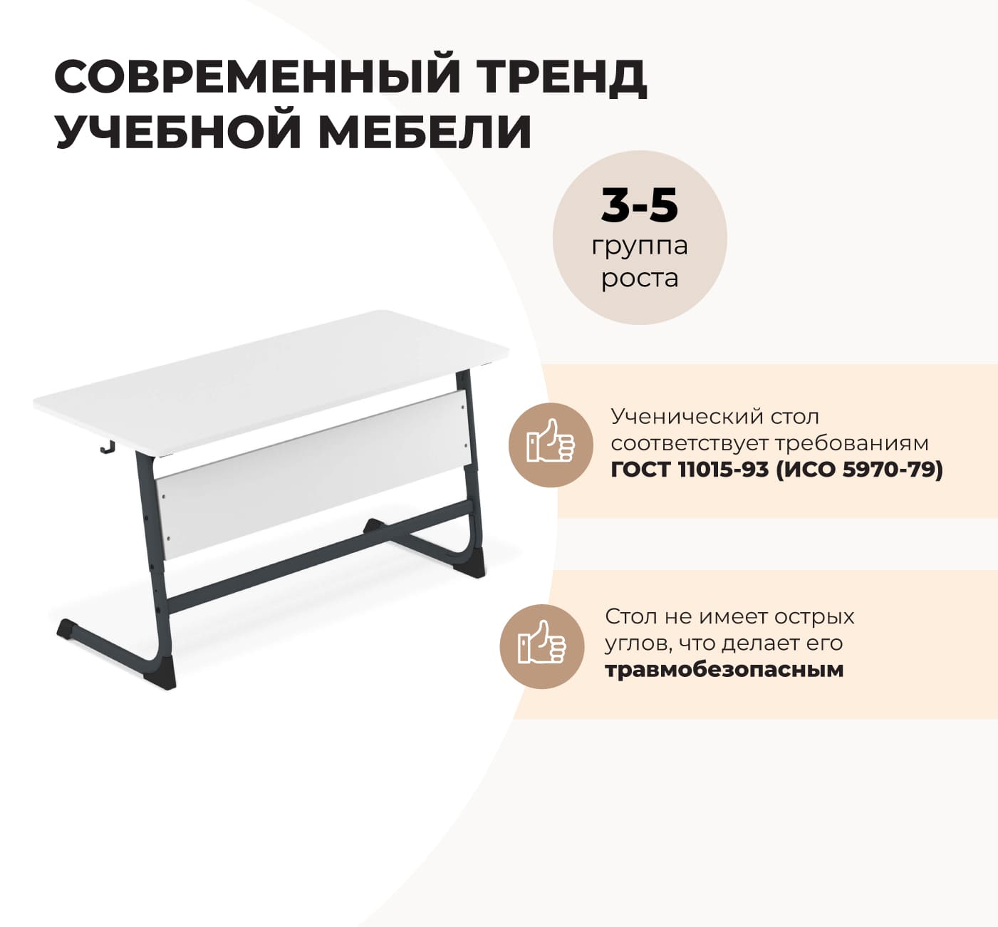 Преимущества стола ученического белый снег/черный муар