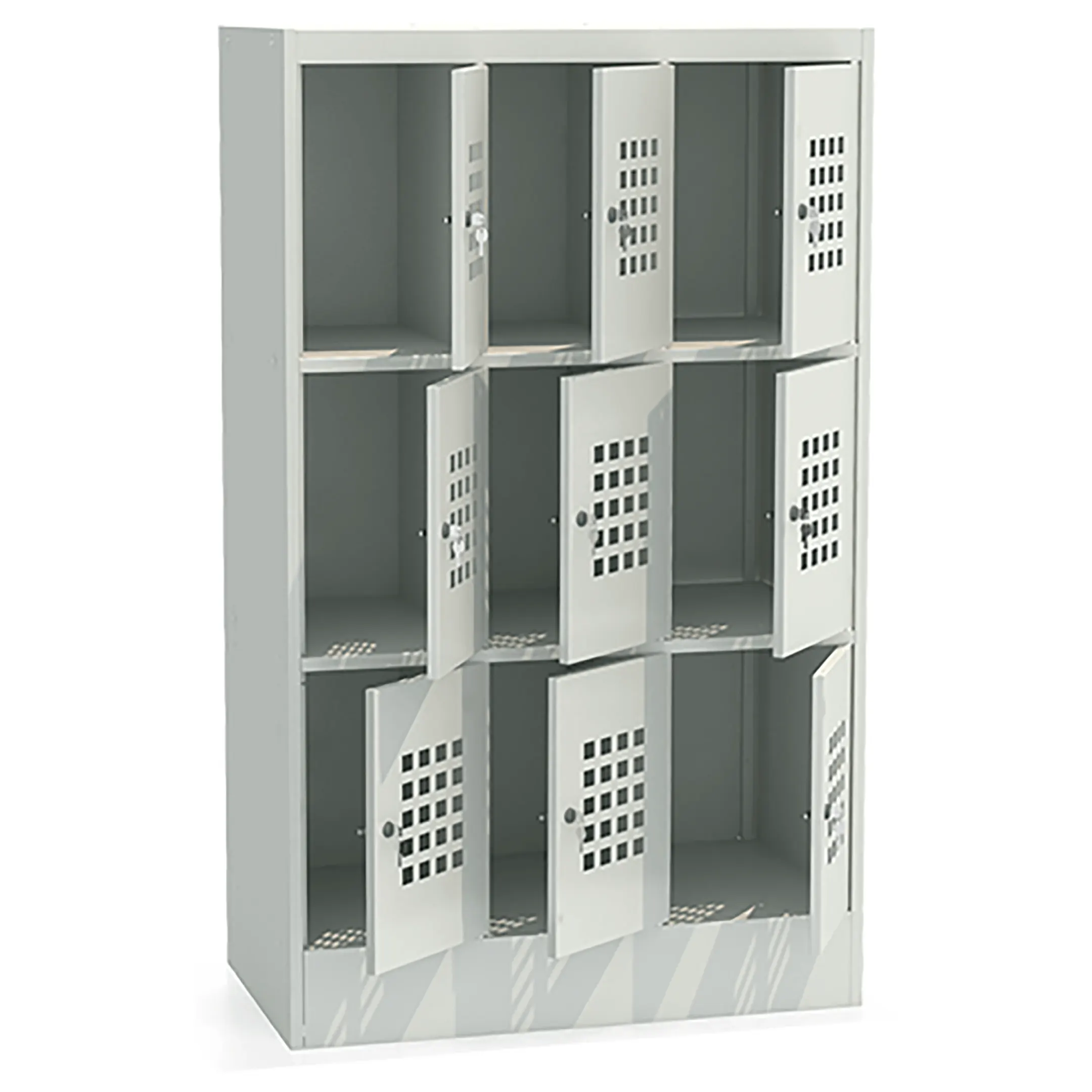 - Компактность при высокой вместимости — шкаф занимает минимальную площадь и при этом предоставляет девять полноценных ячеек для хранения.