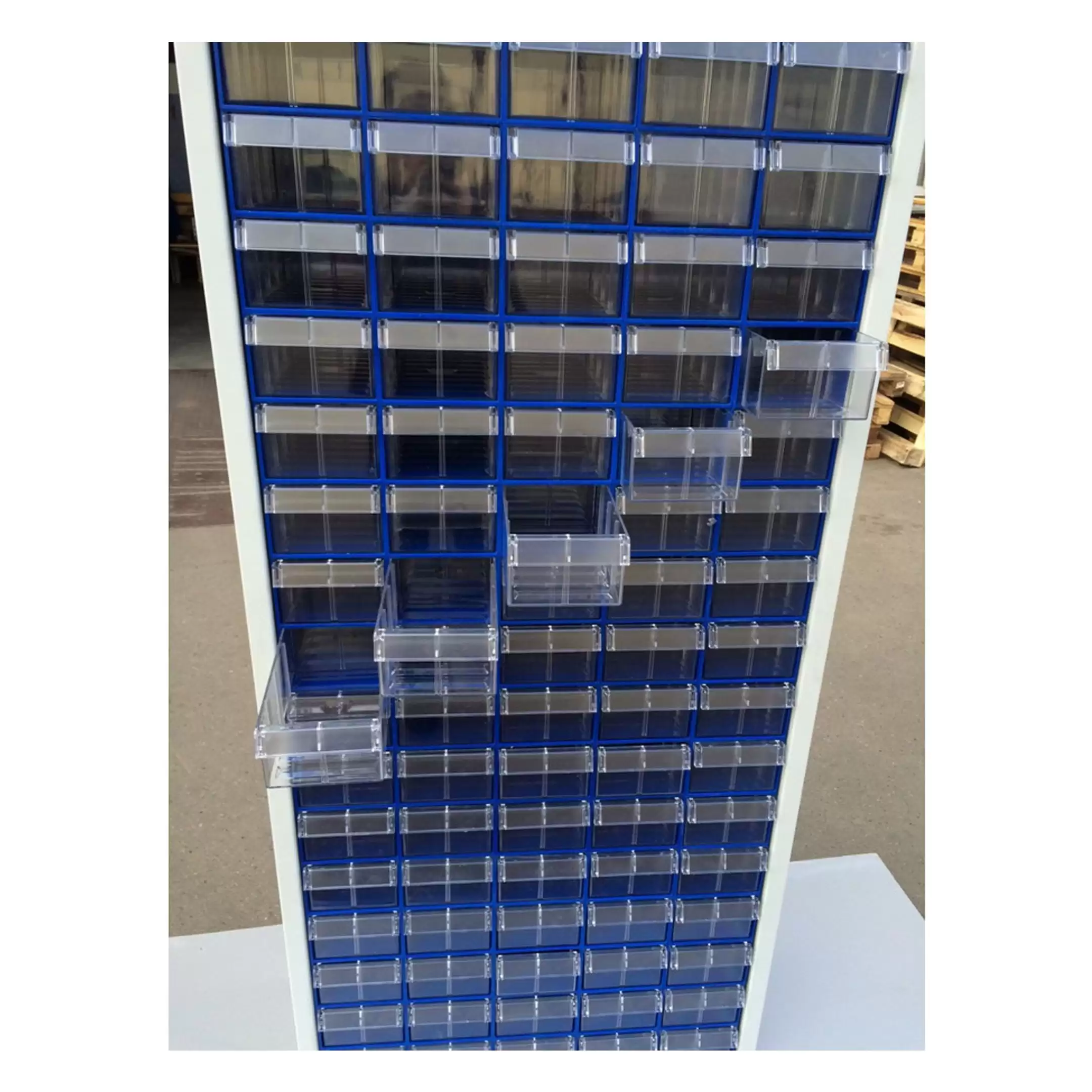 - Визуальный контроль и быстрый доступ — пластиковые ящики, как правило, прозрачные или полупрозрачные, что обеспечивает мгновенную идентификацию содержимого без необходимости открывать и просматривать каждый лоток. Ящики легко выдвигаются и снимаются, обеспечивая удобный доступ к содержимому.