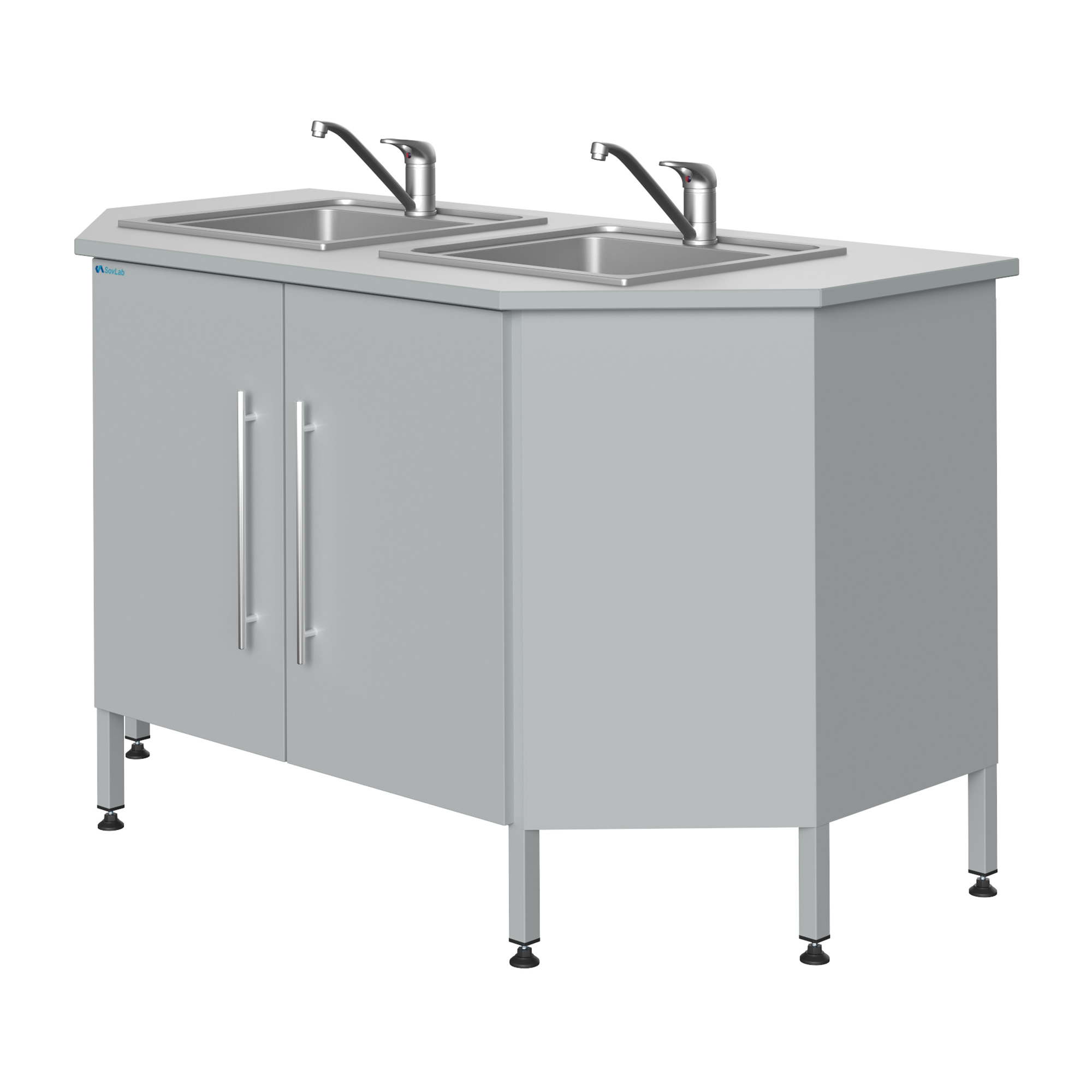 Стол-мойка Mod. 1500 Т НЖ-2 — это специализированное лабораторное оборудование торцевого типа, предназначенное для качественной и безопасной мойки лабораторной посуды, приборов и инструментов. Модель оснащена двумя врезными мойками из нержавеющей стали, смесителем и всей необходимой арматурой для подключения к инженерным сетям. Каркас установлен на винтовые опоры, позволяющие выставить строго горизонтальное положение.