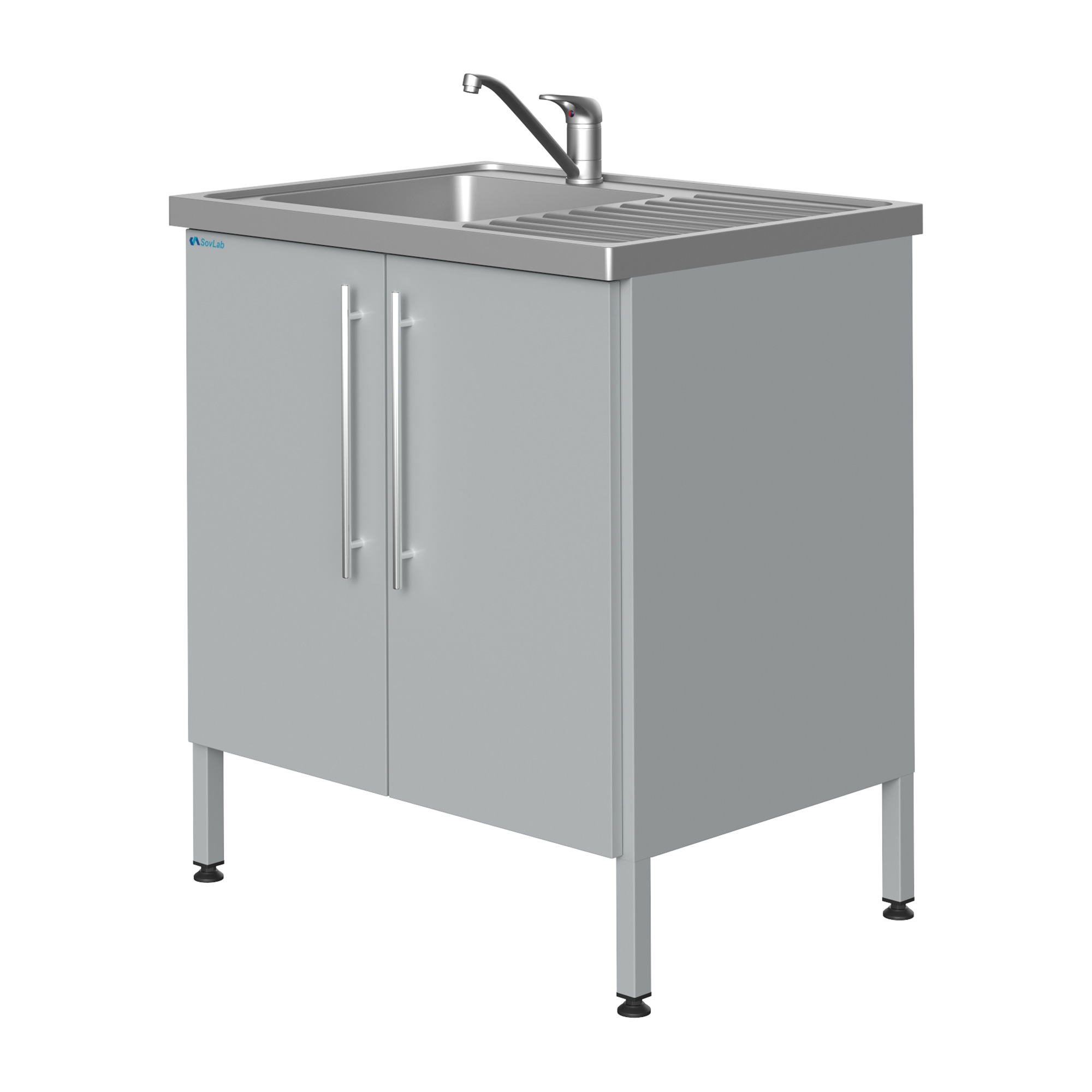 Мойка СОВЛАБ 800 МПП врезная п/пропилен — это компактное специализированное лабораторное оборудование, предназначенное для качественной и безопасной мойки лабораторной посуды, приборов и инструментов. Модель оснащена одинарной врезной чашей из полипропилена, смесителем и всей необходимой арматурой для подключения к инженерным сетям. Тумба из влагостойкого ДСП установлена на прочный металлический каркас с регулируемыми опорами.