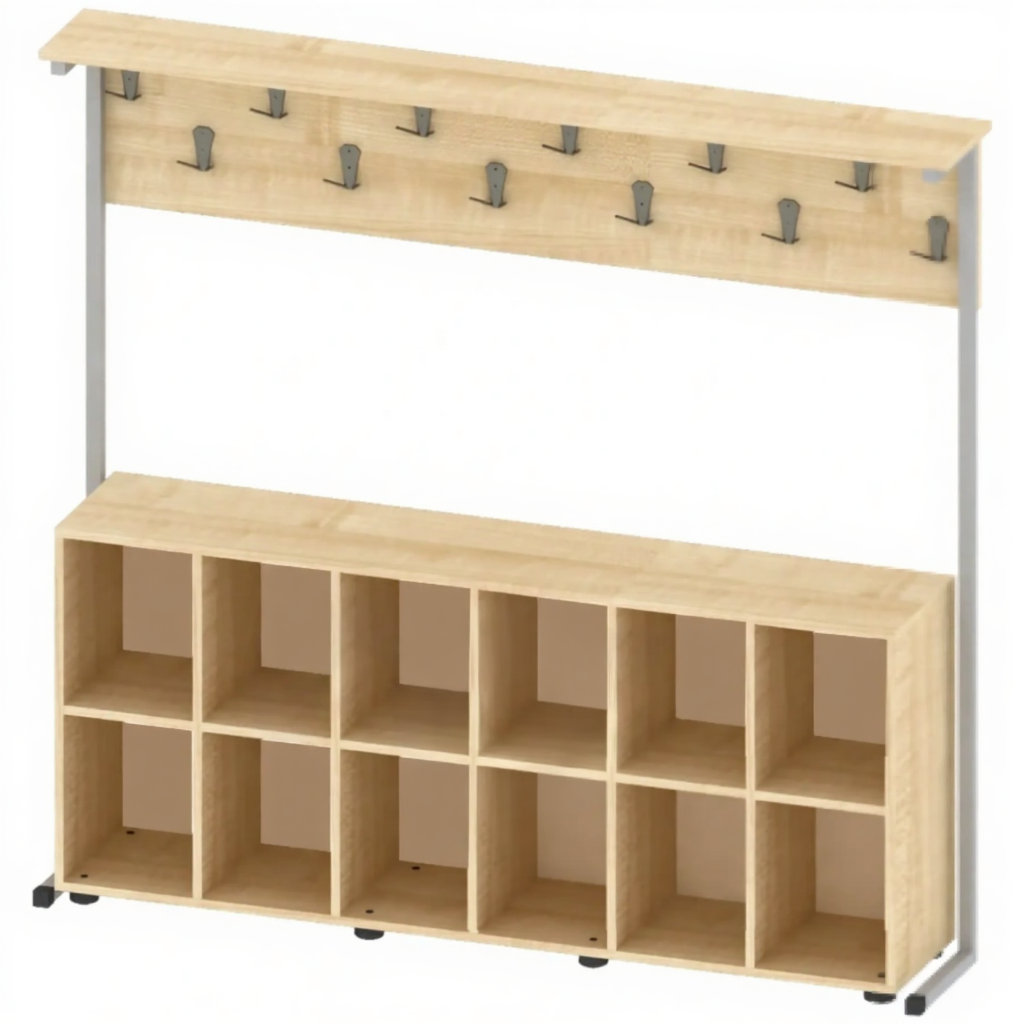Вешалка напольная односторонняя с полками для обуви на 12 крючков ГР-ШП-3-1 — это практичное и функциональное решение для организации гардеробного пространства в образовательных учреждениях, офисах и общественных помещениях. Модель с односторонней конструкцией оснащена 12 крючками для одежды и удобными полками для обуви, что позволяет комплексно организовать хранение вещей. Вешалка предназначена для размещения верхней одежды, головных уборов и обуви, обеспечивая удобное хранение и поддержание порядка в гардеробной зоне.