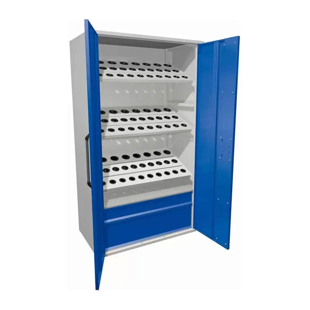 - Специализированная организация для оборудования ЧПУ — внутреннее пространство может быть организовано с учетом специфических требований: регулируемые полки для тяжелой оснастки и патронов, держатели для управляющих программ на перфоленте или электронных носителях, отделения для измерительного инструмента (калибров, индикаторов), что обеспечивает идеальный порядок и быстрый доступ ко всему необходимому для работы на станках с ЧПУ.