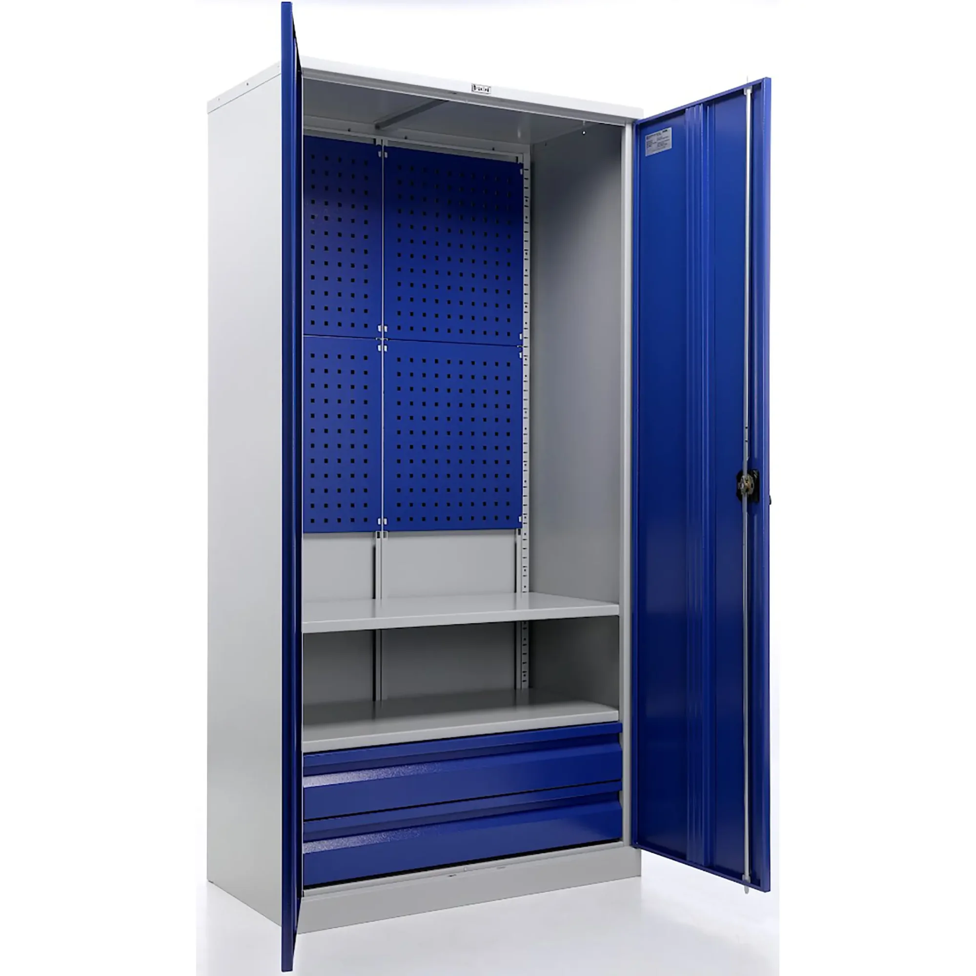 - Максимальная организация и наглядность — модель оборудована обширными перфорированными панелями (система «перфо») на дверцах и, как правило, на задней стенке. Это позволяет удобно, компактно и наглядно разместить огромное количество инструмента на крючках и держателях, обеспечивая мгновенный визуальный контроль его наличия и комплектности.