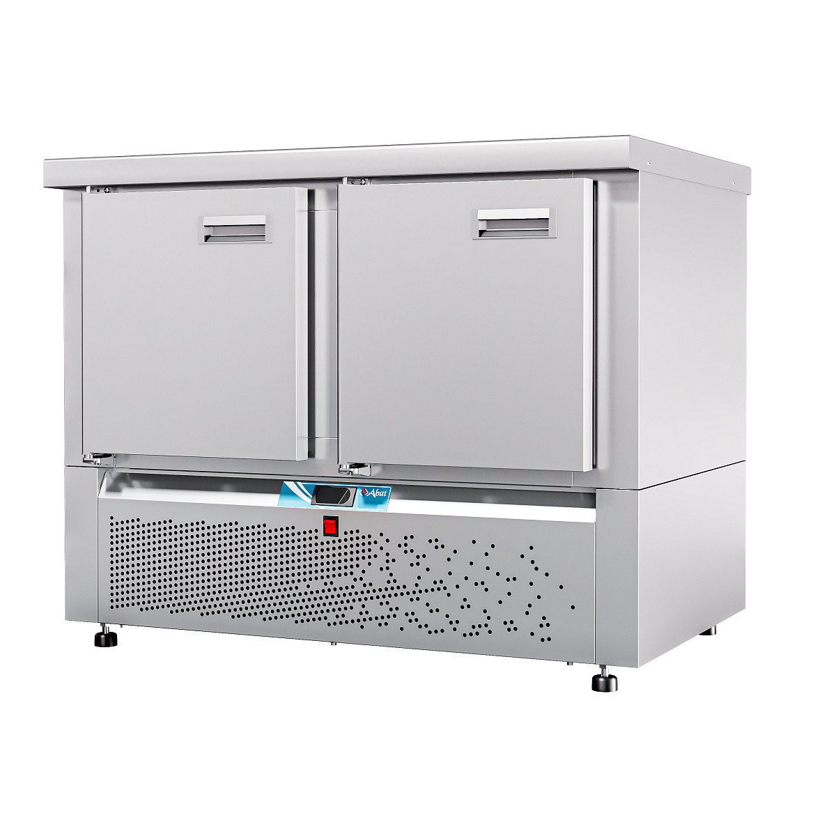 Особенности Электронная панель управления; потребление электроэнергии за сутки, кВт*ч, не более 3,36; климатический класс изделия - 5; поверхность стола - ровная неохлаждаемая поверхность без борта; толщина стенок 60 мм; холодильный агрегат расположен снизу, выдвижной для удобства обслуживания; хладагент - R404a; электронный блок управления с возможностью регулирования и поддерживания необходимой температуры; динамическое охлаждение - воздухоохладитель с вентилятором для равномерного распределение температуры внутри полезного объема; работа при температуре окружающей среды до +42 °C, относительной влажности от 40 до 70%; цельнозаливной пенополиуретаном корпус; автоматическая оттайка; 2 секции - две распашные двери с доводчиком; две регулируемые по высоте полки-решетка размером GN 1/1; уплотнитель с магнитной вставкой на двери для обеспечения полной теплоизоляци; передняя и задняя стенки легкосъемные; регулируемые по высоте ножки, которые могут опционально быть заменены на колеса (2 со стопором, 2 без стопора) без изменения высоты стола. Секции холодильных столов взаимозаменяемые. Предусмотрена возможность замены двери на секцию из одного или двух ящиков, и наоборот. Описание Стол холодильный низкотемпературный с нижним расположением агрегата предназначен для кратковременного хранения пищевых продуктов на предприятиях общественного питания и торговли. Рациональное использование рабочего пространства кухни за счет совмещения в одном изделии функции холодильного шкафа и рабочего стола.