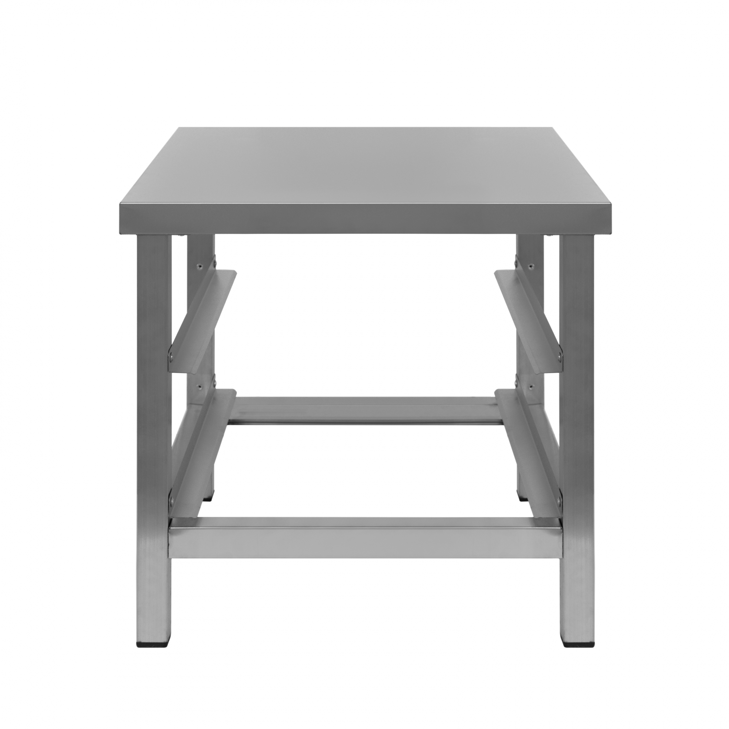 Разборный каркас из профильной трубы 40x40 мм, регулируемые по высоте опоры. 2 ряда направляющих под посудомоечные кассеты 500х500 мм.
