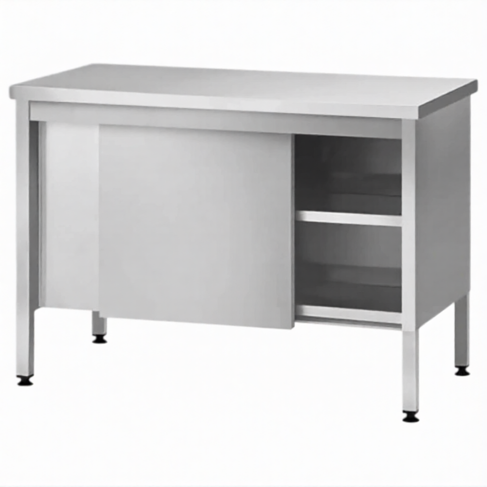 Стол производственный закрытый СПЗп 860х1100х600 «Profi Inox», двери-купе, полка сплошная