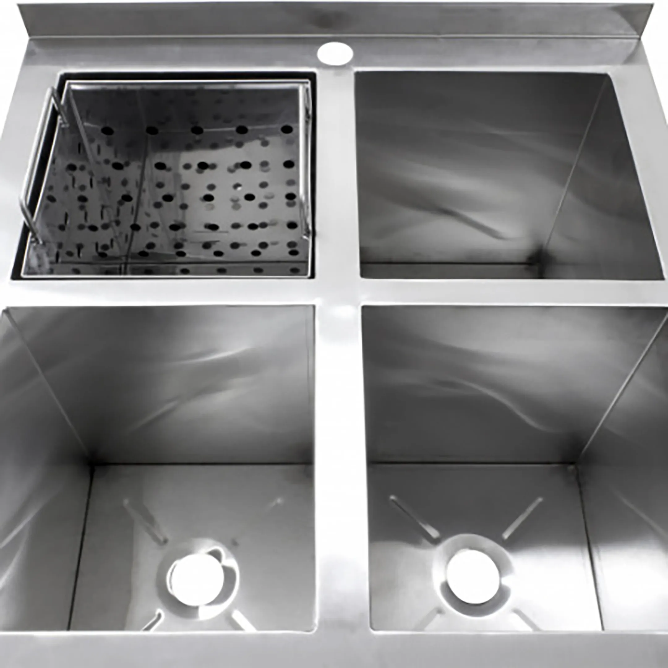 • Ванна моечная ВМОя-7/7-М, имеет 4 независимых ёмкости из нержавеющей стали марки AISI 430 толщиной 0,8мм.;