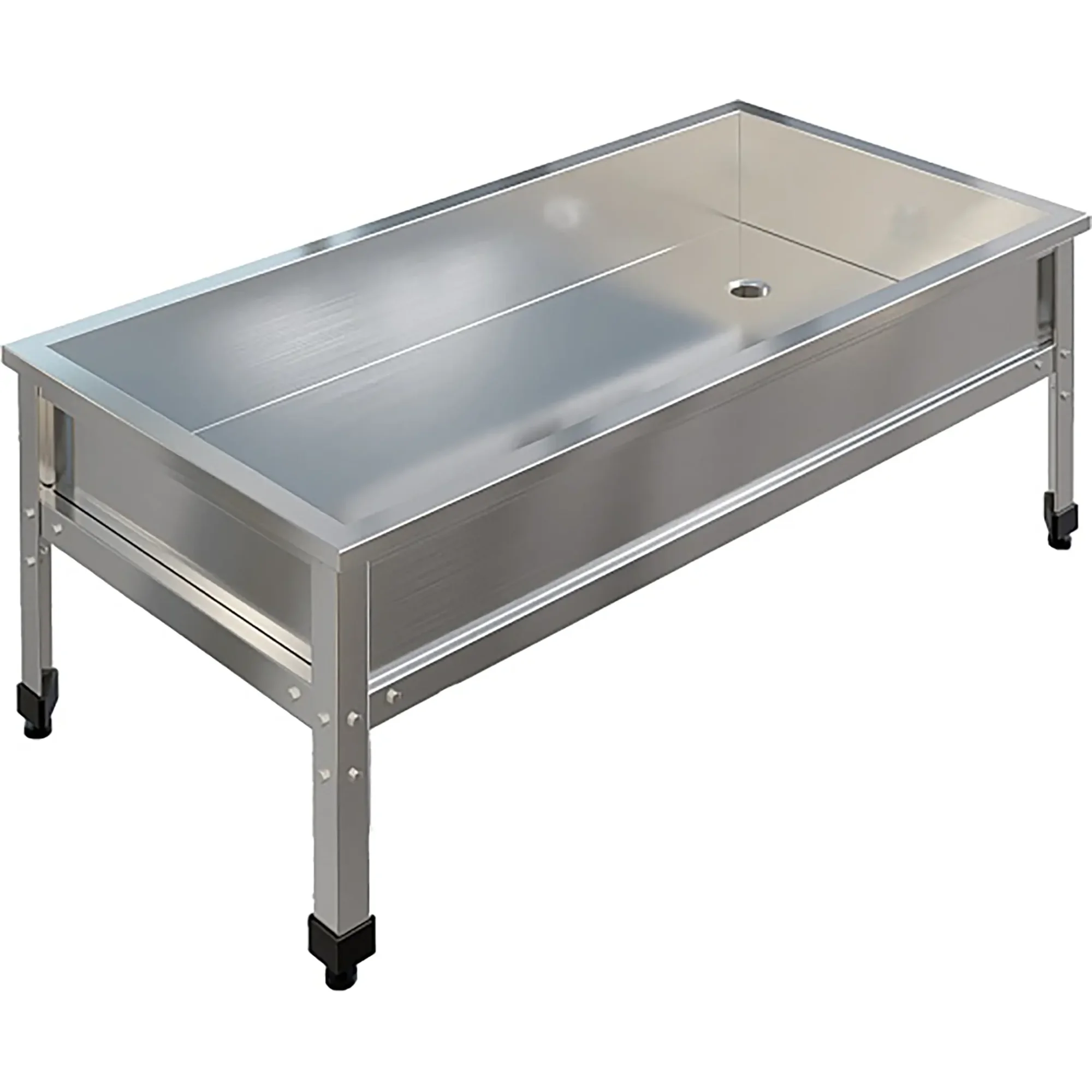 Ванна моечная низкая ВМСН-10/6/4-ЭН разработана для применения в производственных и моечных отделениях предприятий общепита и торговли различного формата, пищевых производств и пищеблоков для мытья и дезинфекции уборочного инвентаря, посуды и кухонных принадлежностей.