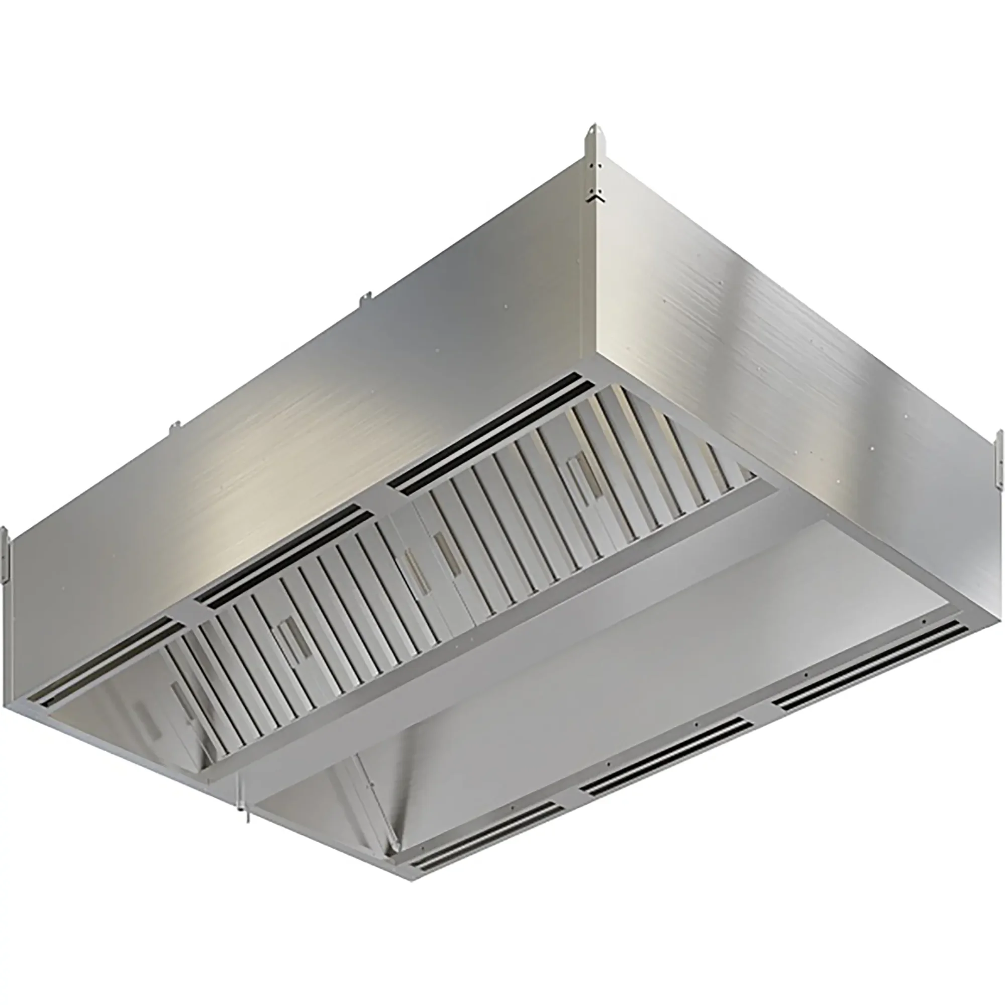 Оборудование подвешивают над тепловым оборудованием: плитами и пекарскими шкафами, жарочными поверхностями, грилями и фритюрницами.