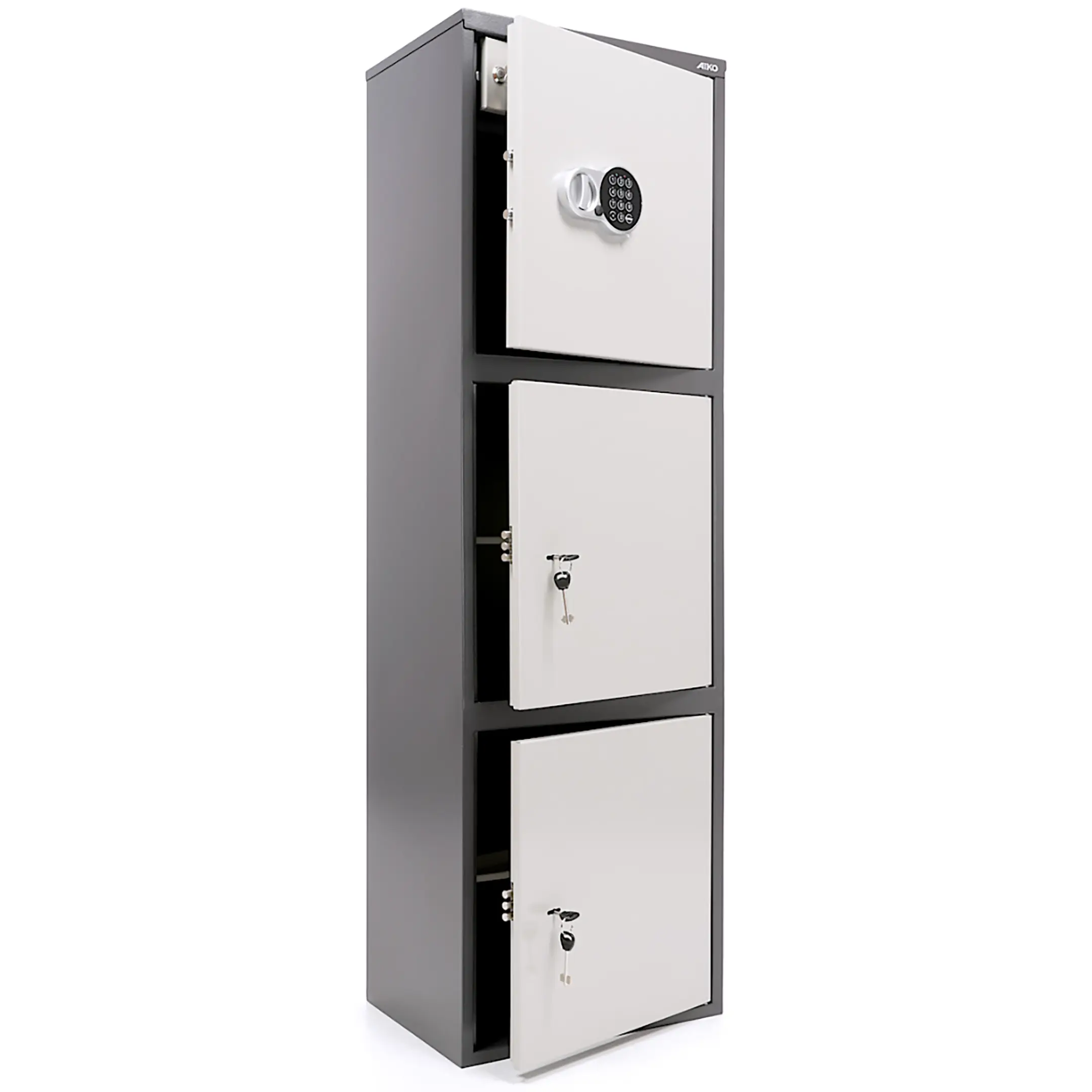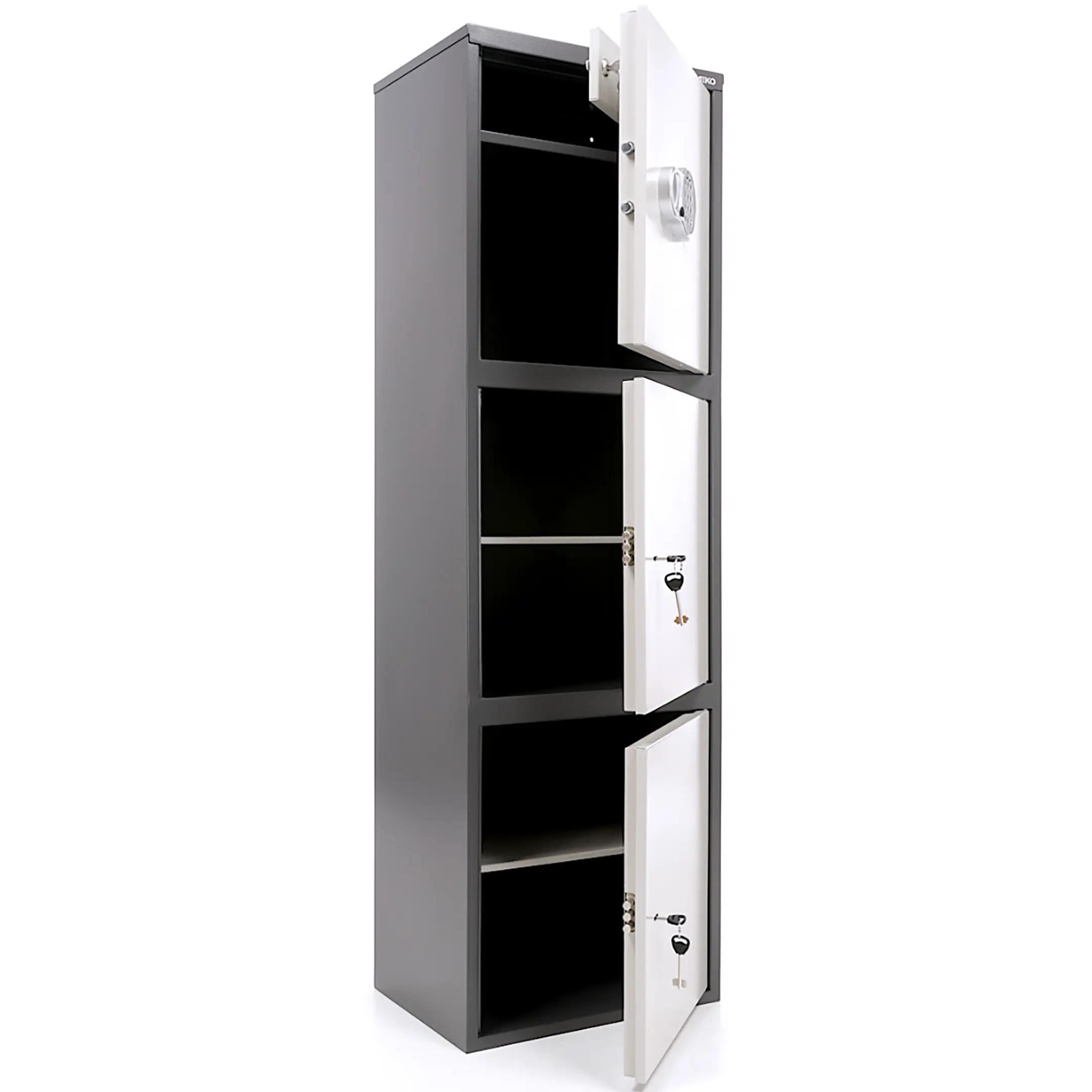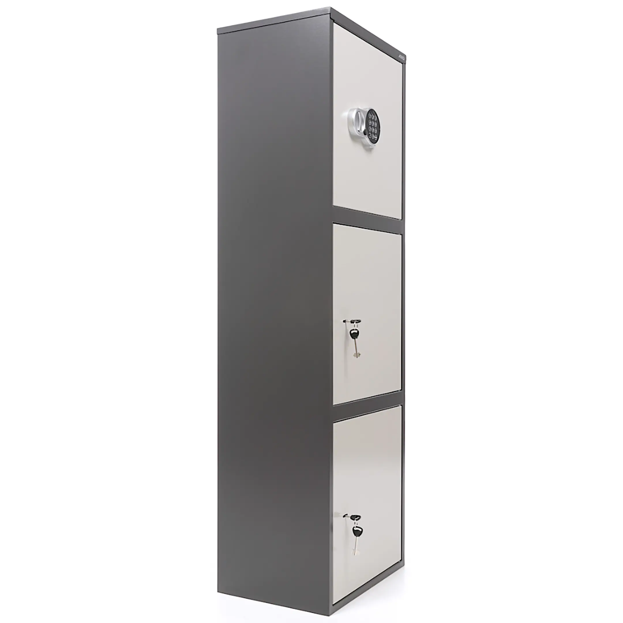 • комплектуется ключевым замком + электронный замок PLS-1( электронный замок устанавливается только на верхнюю дверь, на остальные – ключевой);