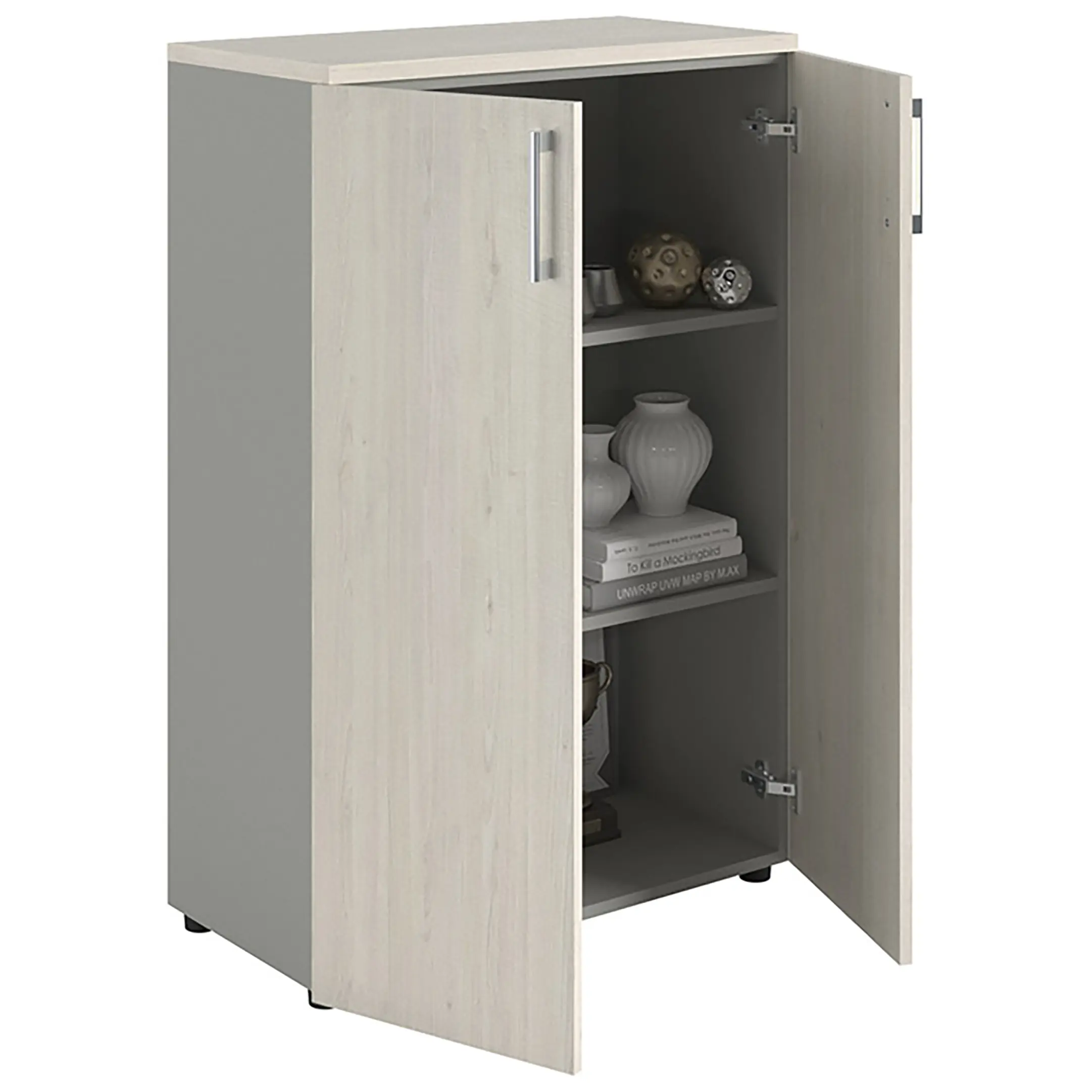 Шкаф NW 0880 закрытый белое дерево/серый предназначен для хранения.