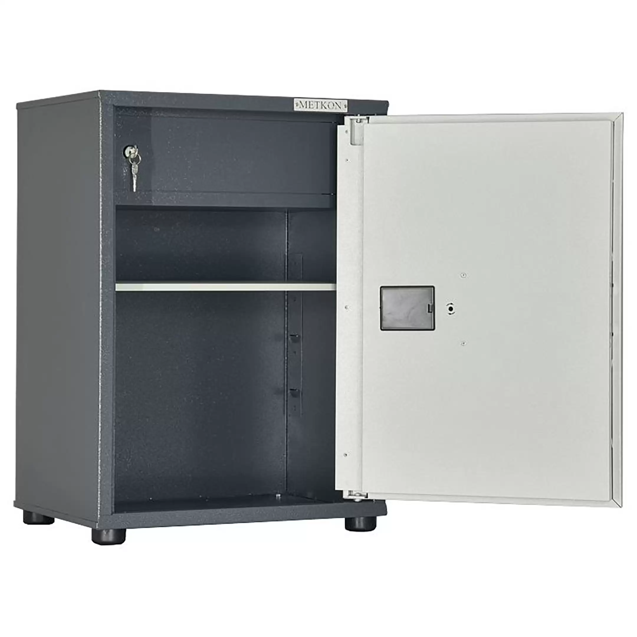 - Надежная конструкция и защита — шкаф изготовлен из прочной листовой стали с антикоррозийным порошковым покрытием. Две распашные дверцы запираются на встроенные замки (обычно по одному на створку), обеспечивая сохранность конфиденциальных документов и ценного имущества.