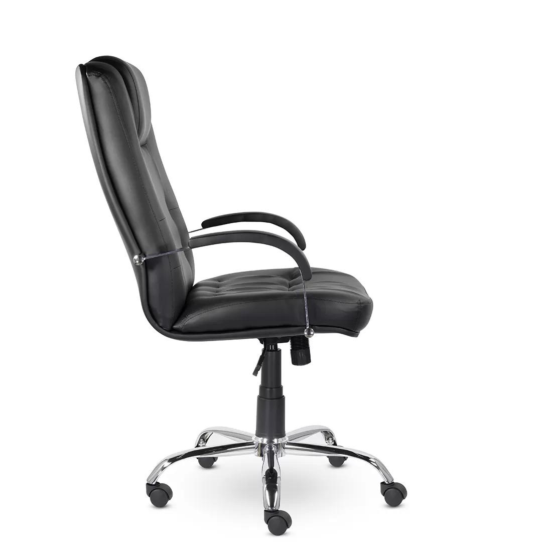 Кресло K‑41 Кендо В хром — стильное и солидное офисное кресло руководителя с высокой спинкой, подголовником и хромированными элементами. Модель сочетает презентабельный дизайн, комфортную посадку и надёжную конструкцию, что делает её отличным решением для кабинетов, переговорных и рабочих зон.