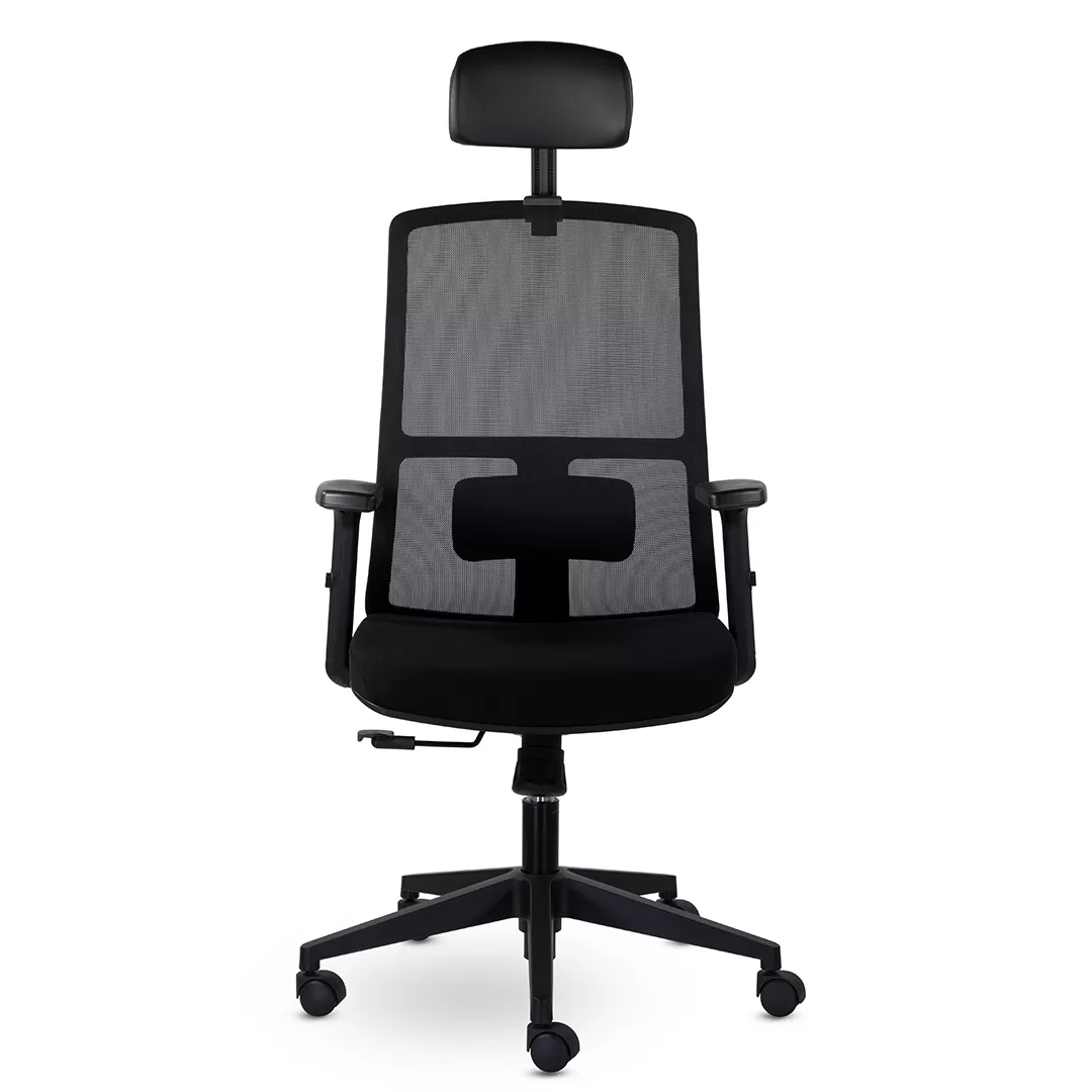 - Эргономичная конструкция с подголовником — высокая спинка и встроенный подголовник обеспечивают правильную поддержку позвоночника и шейного отдела, снижая усталость при длительной работе за компьютером.