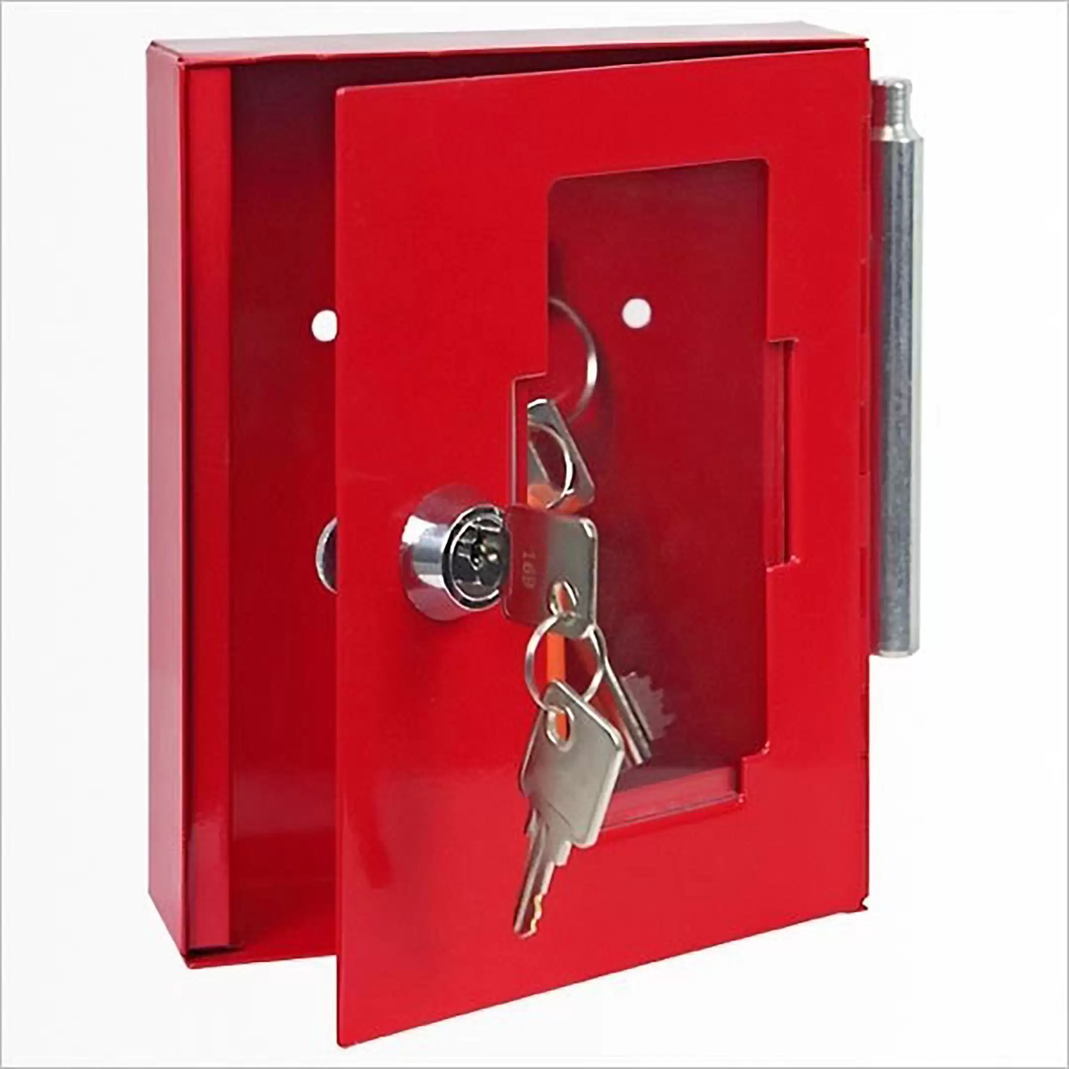 - Быстрый и гарантированный доступ в экстренных случаях — прочный прозрачный корпус позволяет визуально контролировать наличие ключа. Встроенный молоточек предназначен для моментального разбития дверцы в случае необходимости, обеспечивая доступ к ключу за считанные секунды без поиска инструментов.