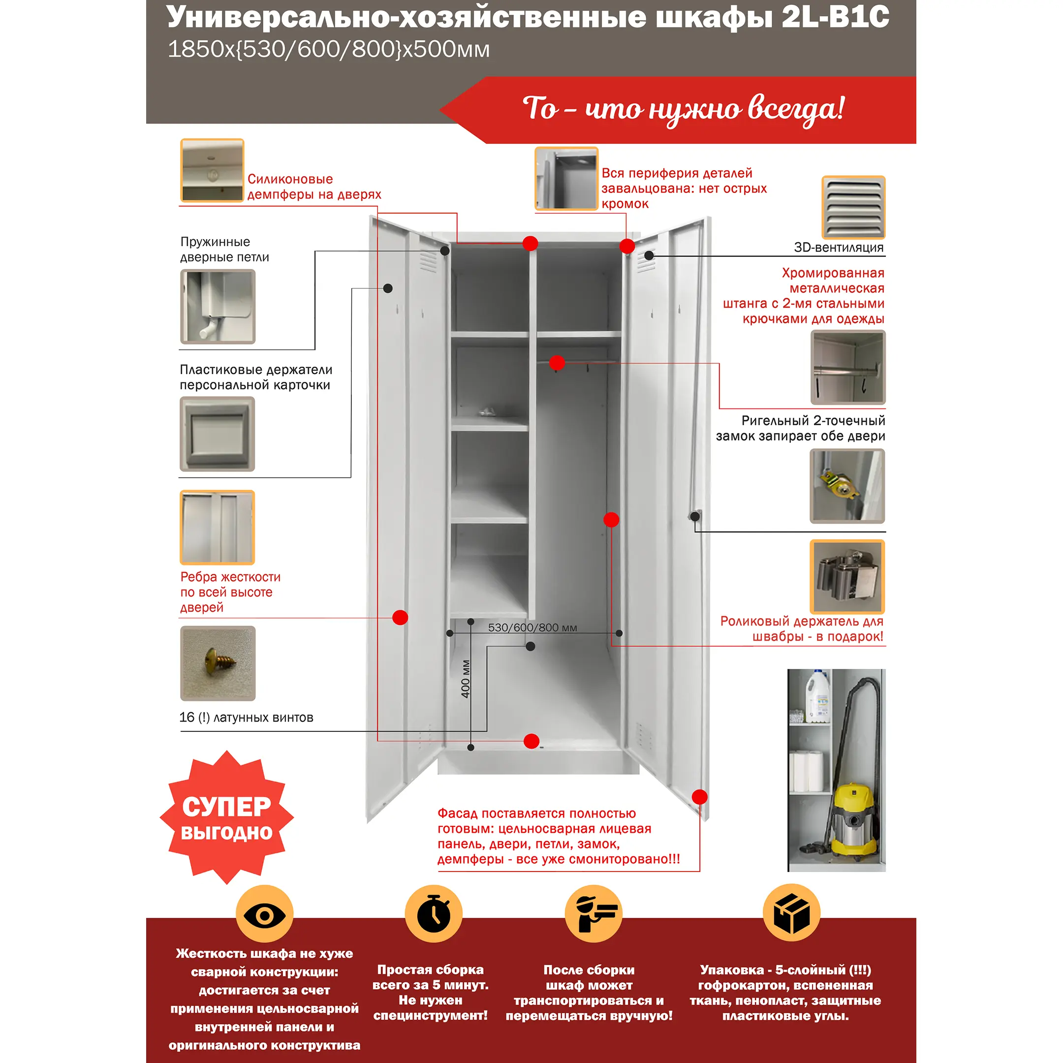 Преимущества шкафа хозяйственного 2L-B1C-800